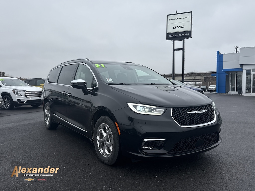 Brilliant Black Crystal Pearlcoat 2021 Chrysler Pacifica Limited AWD 9-Speed 948TE Automatic 3.6L V6 24V VVT 4 WHEEL DRIVE/ALL WHEEL DRIVE, SUNROOF/MOONROOF, NAVIGATION, FRESH TRADE, SERVICED HERE, FREE LIFETIME STATE INSPECTIONS, ONLY AT BLAISE ALEXANDER CHEVY GMC OF SELINSGROVE, 13 Speakers, Air Conditioning, Automatic temperature control, GPS Navigation, Navigation System, Power moonroof, Quick Order Package 27P, Rear window defroster, Remote keyless entry, SiriusXM Satellite Radio, Steering wheel mounted audio controls, Wheels: 18" x 7.5" Polished Aluminum Design 3.